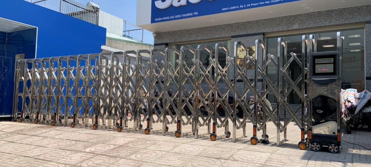 - báo giá cổng xếp inox 304 Huyện Gò Công Đông